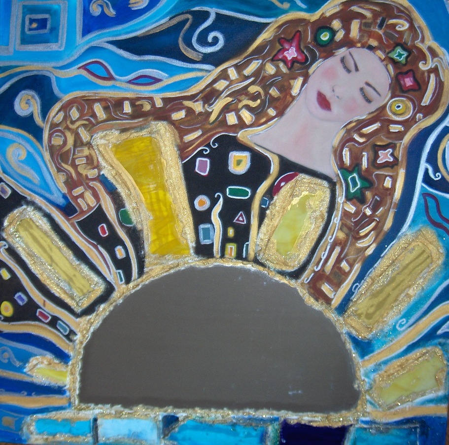Specchio dell’'anima Struttura Acrilica e Gel su Tela Gallery, con specchio e vetri a mosaico.